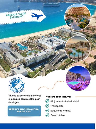 • Paquetes de 3 noches / 4 días con vuelo + hotel + traslados desde ~MXN $9,250-13,990 dependiendo del hotel.